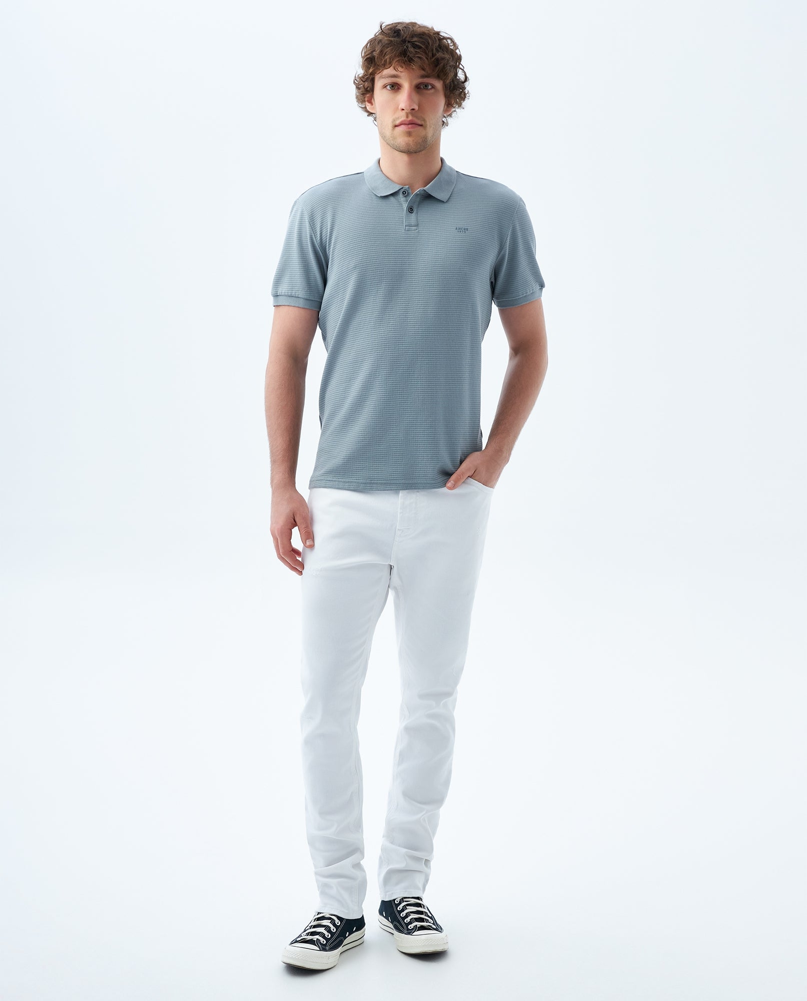 Especificaciones del fit: Una prenda slim fit, que se ajusta cómodamente a tu silueta, para elevar tu estilo a donde vayas. Descripción técnica de la prenda: -Slim fit -Manga corta -Tela texturizada -Cuellos y puños tejidos al tono -Aplique en punto corazón. Entre un estilo sofisticado y casual, las polo con sello Americanino, siempre tienen la mejor respuesta. Material: Elaborada en 66% algodón y 34% poliéster para ofrecer una mezcla óptima de comodidad y durabilidad. *El modelo mide 1,87 centímetros y usa una polo talla M.