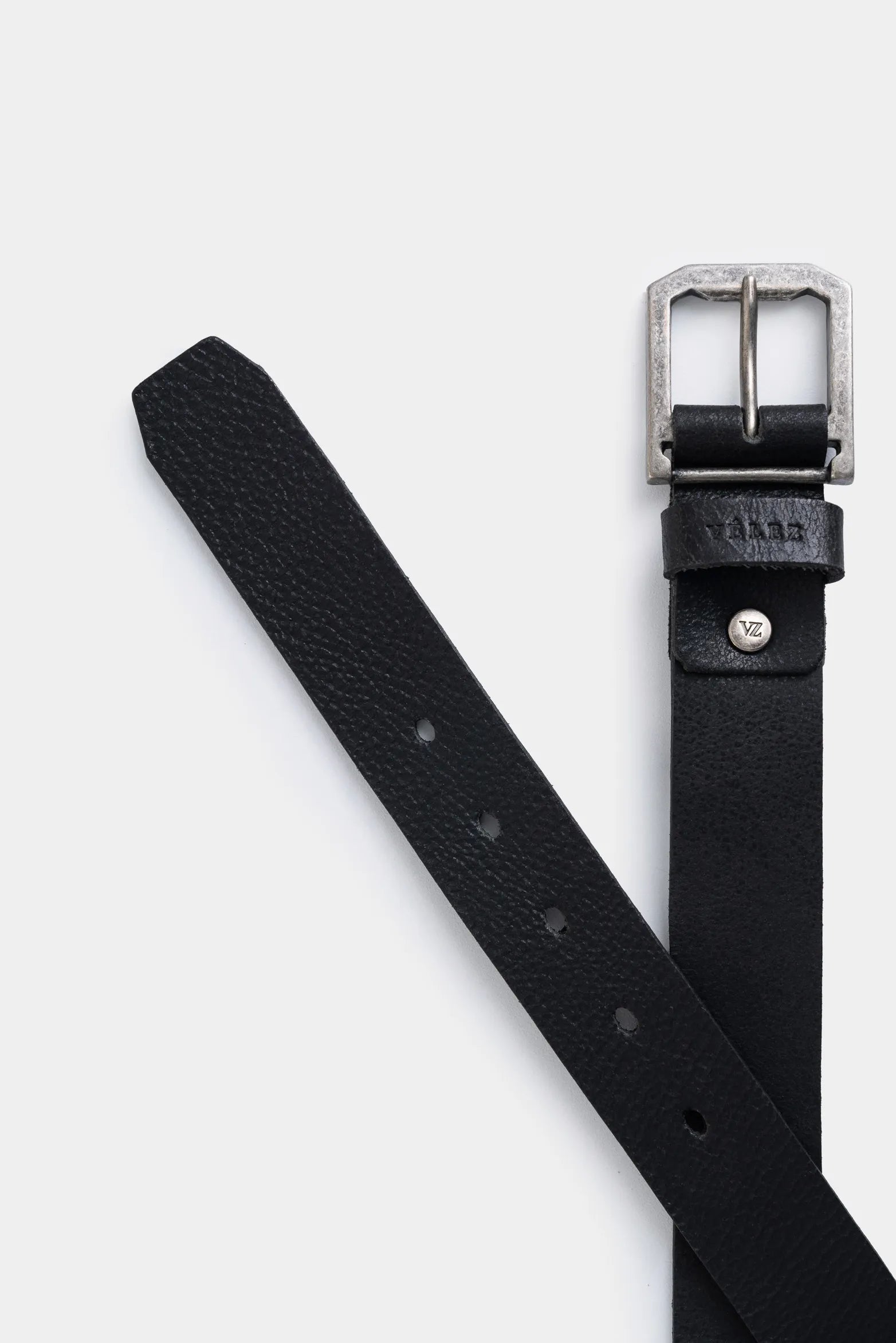 Este cinturón unifaz, en cuero liso semi brillante, es la respuesta moderna a la demanda de dinamismo y versatilidad. Un nuevo clásico que combina la estética atemporal con toques contemporáneos, como su hebilla metálica con acabado plata quemada y su terminación de punta cuadrada que añaden un distintivo de belleza natural y expertise en cuero. Creado a mano, este accesorio incorpora diseños geométricos que reflejan la innovación en cada detalle, posicionándolo como un esencial para la cotidianidad.