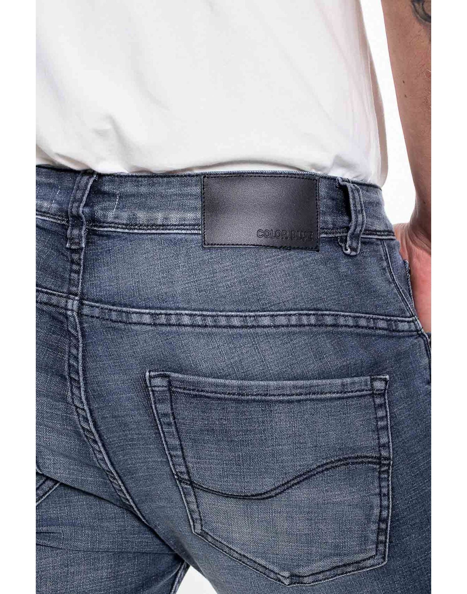 Denim slim fit con lavado stone y desgastes. Esta prenda está hecha con el corazón por manos Colombianas.
